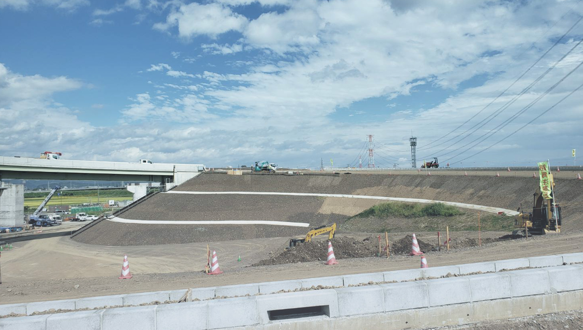 現在は、一般道路や高速道路、側溝など道路工事の設計・施工管理・施工業務など県内の公共工事を中心に対応しています。